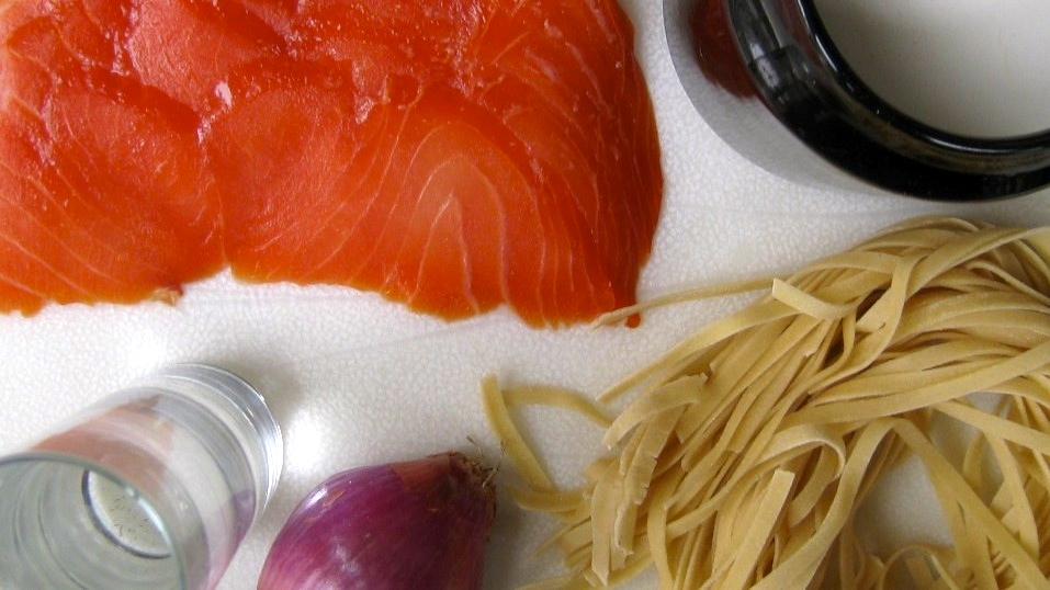 fish-based, however, no cheese is used during its preparation, nor when it is served, and shallots are used in place of the ill-fated garlic. All was well until a few months ago when I watched a YouTube video of a woman making a pasta with salmon dish. She only spoke Italian and her video was often interrupted by advertisements for some sort of thick, cream-like, vegetable-based product. Being that my knowledge of the language is so limited, I was about to turn off the video when she added some vodka to the sauce. (I may not know many foreign words but, inexplicably, “vodka,” much like “jagermeister,” is one that I recognize in many tongues.) As a result of that video, I added an ounce of vodka to my recipe and liked the result, for it really does add a nice depth to the dish. One thing I’ve learned, though, is that when you use vodka in