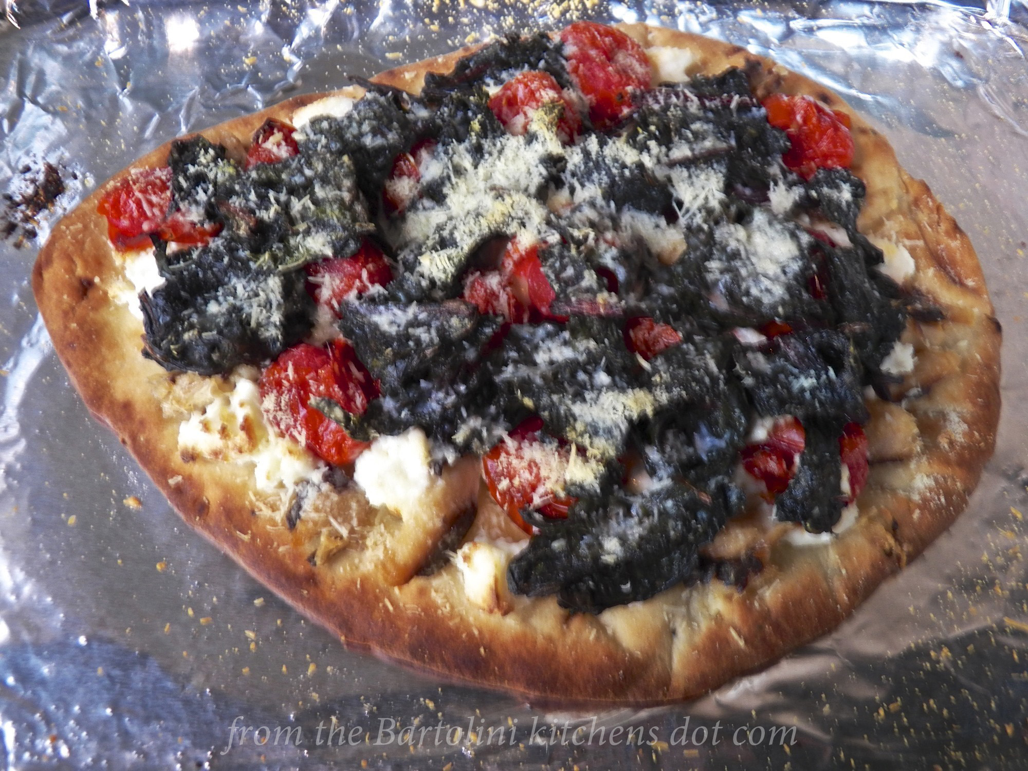 Kale Pizza Published April 23, 2014 at 2000 × 1500 in A Tale of Two Pizzas Roasted grape tomatoes, sardines, sautéed kale, mozzarella, grated Pecorino Romano cheese