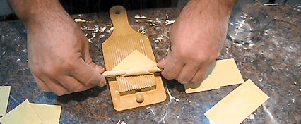 g-4 Published November 26, 2011 at 426 × 176 in Homemade Garganelli Pasta Use the dowel, begin with top corner, and roll the square to form a tube