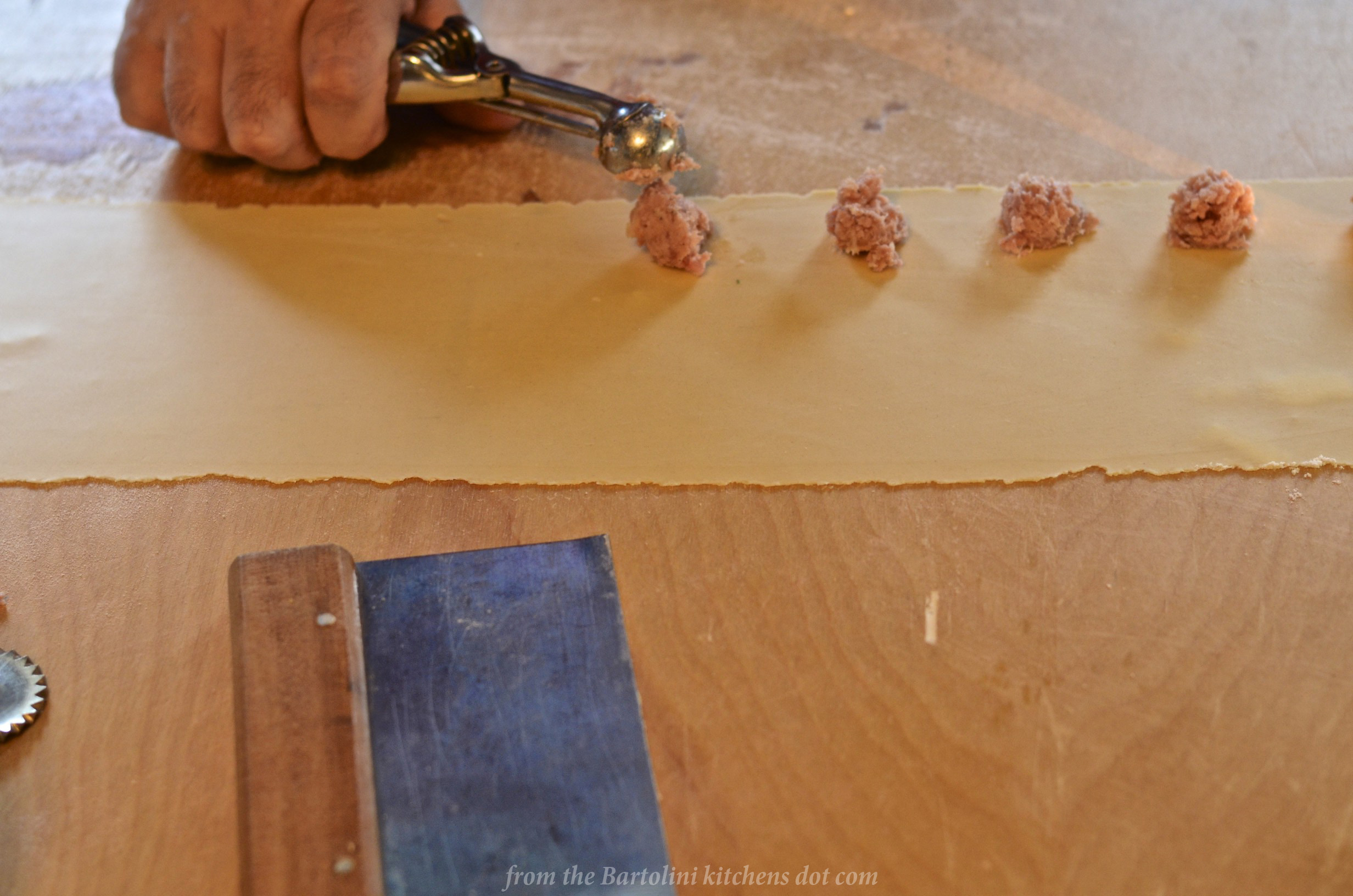 Published March 4, 2015 at 2464 × 1632 in Agnolotti Redux 1. Place a row of filling on the dough strip