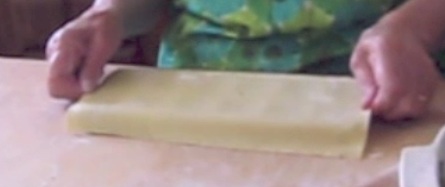 Start with a sheet of dough covering the dye.