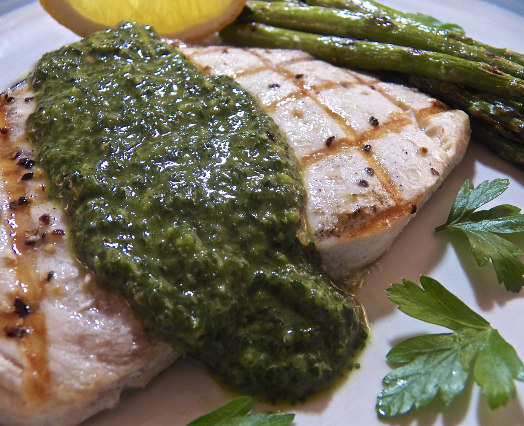 I used a grill pan here but you could just as easily use your barbecue, broiler, or skillet to cook your tuna steak. Just resist the urge to move the steak until it’s time to turn it.