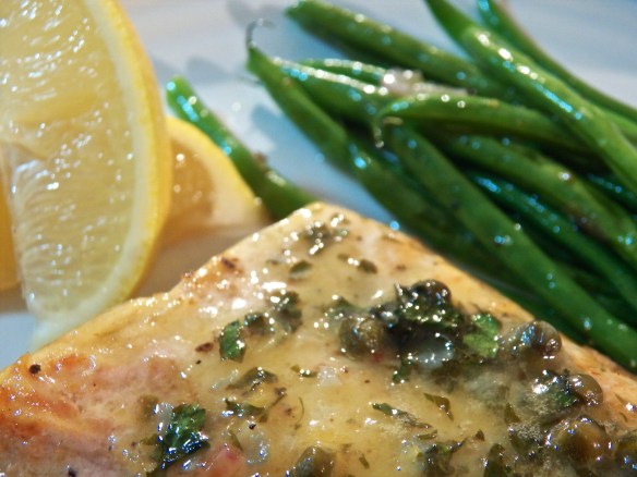 Whereas Grandpa’s tuna rested on a plate, the foot of my salad rests on a bed of mixed salad greens. Rather plainly dressed, Grandpa’s tuna was clothed with just onion, salt, pepper, and oil & vinegar. My new tuna salad is adorned with capers, onion, salt, pepper, olive oil, and freshly squeezed lemon juice. Most importantly, Grandpa’s tuna came to him by way of a can. My tuna skipped the middleman, taking a more direct route to my plate via a grill pan.