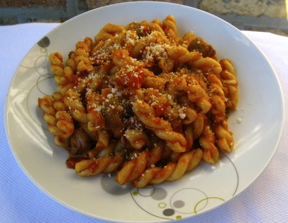 I probably would have let things end there but, as luck would have it, I was served today’s dish in Rome the night before and couldn’t get it out of my mind. The pasta was fantastic and I wanted a chitarra even more. So, when I returned home from Michigan, I went to my favorite online site for pasta equipment and bought myself a chitarra. Made on this side of the Atlantic, it’s a sturdy piece of equipment and, unlike those abroad, it can be sent back to be restrung when needed — for a price, of course. The chitarra was delivered within days and today’s dish is the result of our first duet. (By the way, if anyone asks, I bought my chitarra at a quaint little shop not far from our flat in Rome. Mum’s the word.)