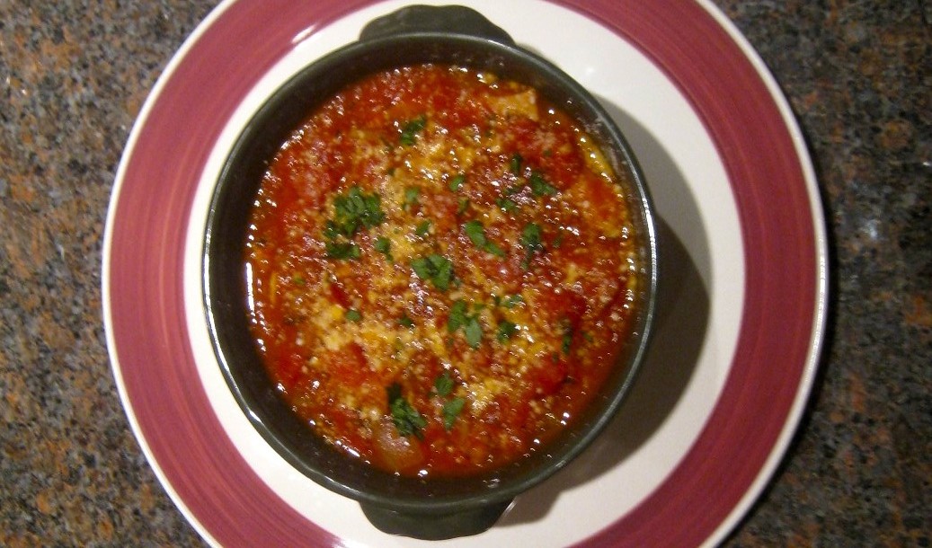 The dish I was served used halved cherry tomatoes. You could easily substitute one or two chopped fresh tomatoes, depending on the portions to be served.