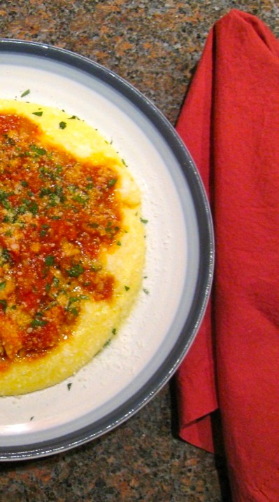 Sugo all’Amatriciana, in its purest form, consists of 3 ingredients: guanciale, tomatoes, and Pecorino Romano cheese. Depending upon the amount of fat rendered from the guanciale, a little extra virgin olive oil may be required. Add a little salt and pepper and your sugo is ready to go. As you might imagine, there are variations. The pasta I was served contained a hint of garlic and a little heat from red pepper flakes. Onions were not used and, according to my waiter, they rarely, if ever, are. So there you have it. If you’re using homemade pasta, this dinner can be on the table in well under 30 minutes. In fact, it will take longer for the pasta water to boil than for any other part of the dish to be prepared.