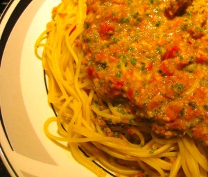 Like I said, it’s is a simple dish with relatively few ingredients and, as such, there’s little room for variations other than the pasta selection and the cheese. For the pasta, I prefer to serve this sauce with pastas like penne, rigatoni, or campanelle (little bells) and not any of the ribbon-like pastas. As for the cheese, if I have ricotta salata, that’s great. If I don’t have any, I’ll substitute some crumbled feta or, if all else fails, some grated parmesan cheese. I’ve even used some grated fresh mozzarella, so, I wouldn’t let the absence of ricotta salata prevent you from enjoying this dish.