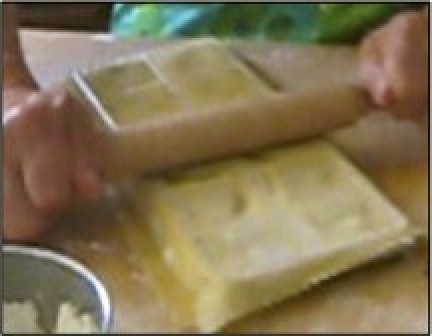 Use rolling pin to seal dough sheet edges