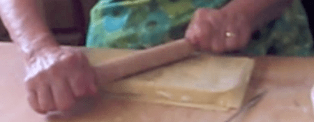 Use rolling pin to seal dough sheets.