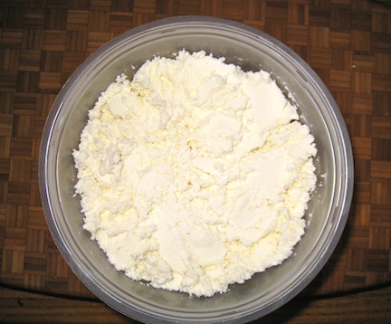 One night in the Fall of 2009, I was having trouble sleeping so I did what I always do: I surfed the web. Eventually, I came across a cheese-making site, then another, and another. At the time, I had no idea that so many varieties of cheese could be made at home. While some – gorgonzola, cheddar, parmesan, etc. — are a bit too involved for me to attempt, I have made mozzarella, cream cheese, ricotta, mascarpone, and goat cheese, not to mention butter and herbed yogurt cheese. Although I’ve no intention of blogging about my cheesy exploits, earlier today I followed a recipe from a cooking show that produced a great batch of ricotta. Because of its simplicity and delicious results, I thought I’d devote today’s entry to the making of ricotta. For those interested in making cheese at home, I’ve listed below a few websites that I’ve used as sources for both information and supplies.